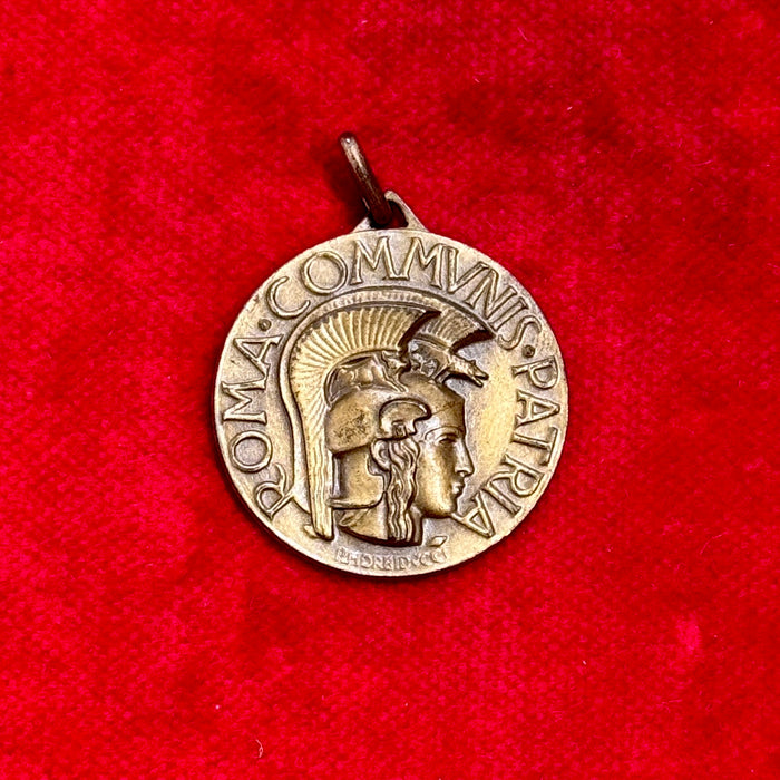 Medaglia commemorativa in bronzo realizzata dal Monte dei Paschi di Siena per ricordo della visita alla Mostra della Rivoluzione Fascista da parte dei dipendenti e dirigenza nel 1933.