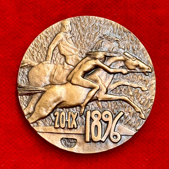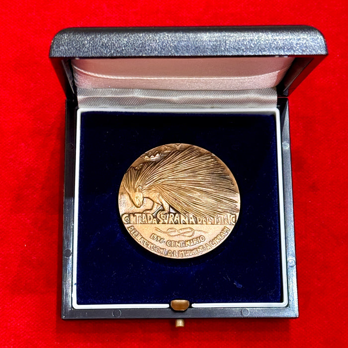 Originale medaglia celebrativa del centenario della statua di Garibaldi, realizzata dalla Contrada Sovrana dell'Istrice in bronzo. Completa di sua scatola.