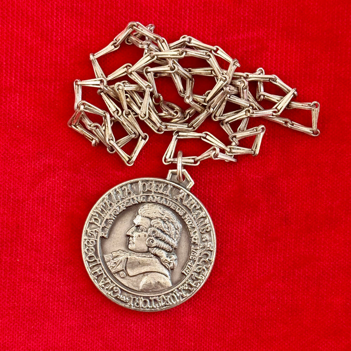 Medaglia Gran Loggia d’Italia Siena Mozart accett. muratori arg 925 con catena 1990 ca