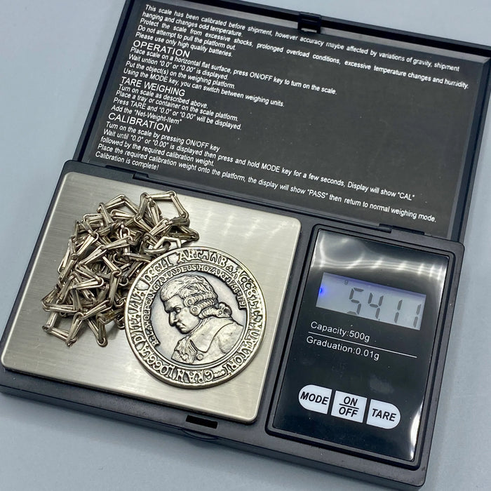 Medaglia in argento 925 con catena dal peso totale di 54 grammi della Gran Loggia d’Italia di Siena.