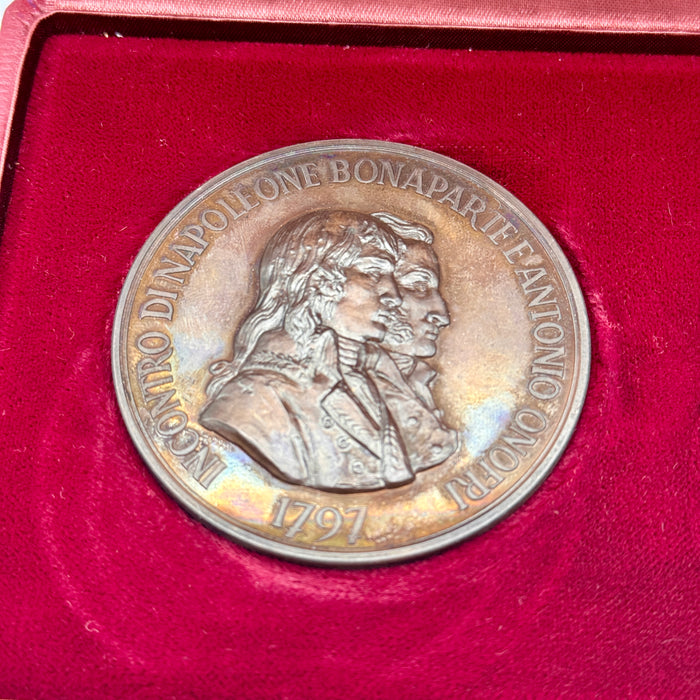 Cofanetto con le due medaglie in bronzo ed argento celebrative del bicentenario di Napoleone Bonaparte. Completo di certificati, esemplari 456 di 2760.
