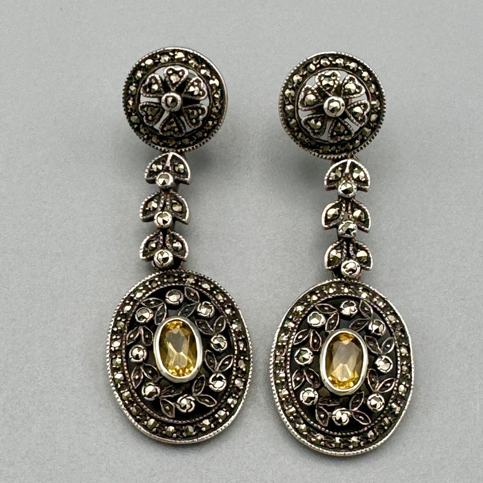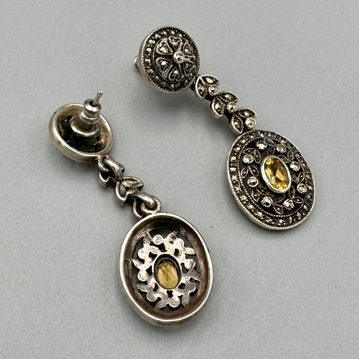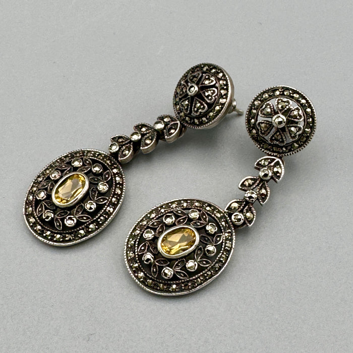 Orecchini pendenti citrino montatura argento 925 Italia 1950 ca