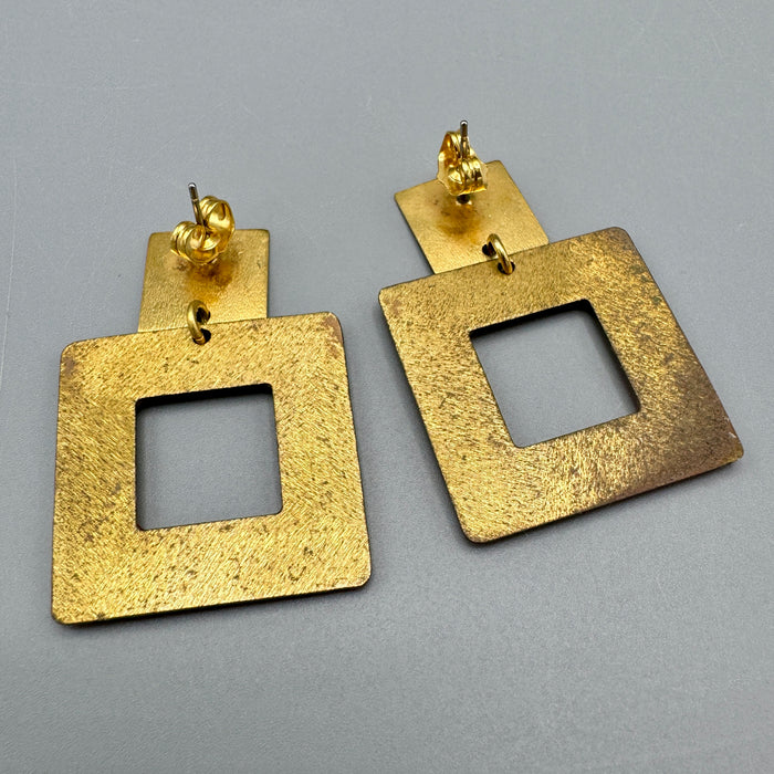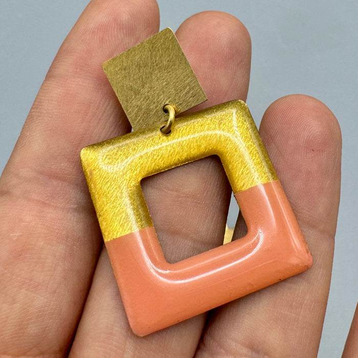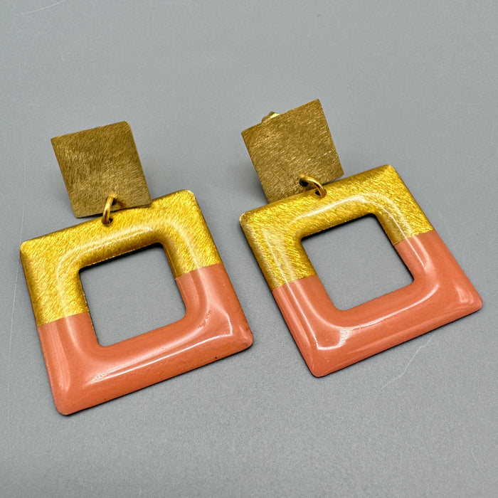 Orecchini stile vintage quadrato rosa dorati smalto Italia 2020 ca
