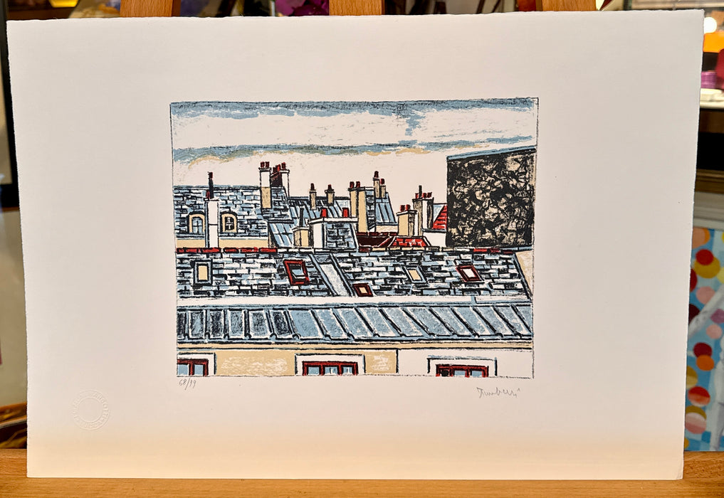 Orfeo Tamburi - "I tetti a Evelyne" - litografia su carta num. 68/99 - 1980 ca