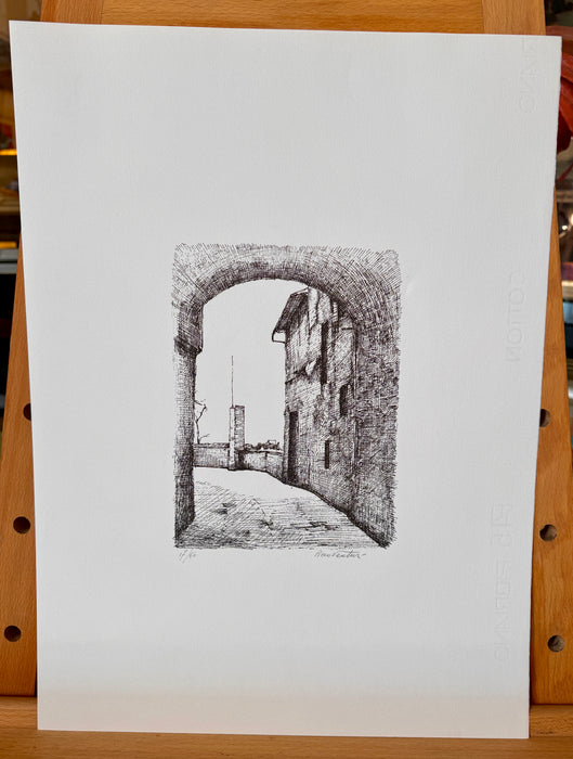 Litografia su carta titolo "Vicolo degli Orbachi Siena" realizzata da Piero Venturi a cura del Centro delle Arti di Siena e della Libreria Senese, edizioni "Lito 3". Numerazione 17/60.