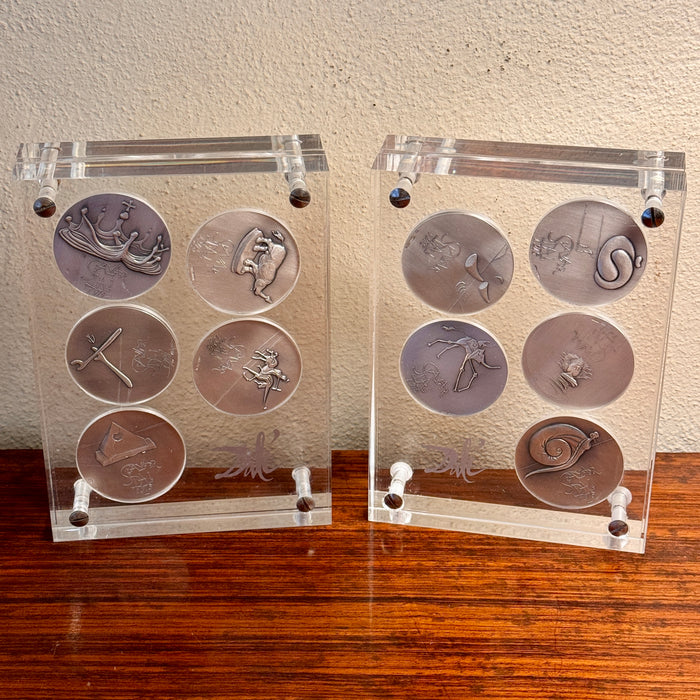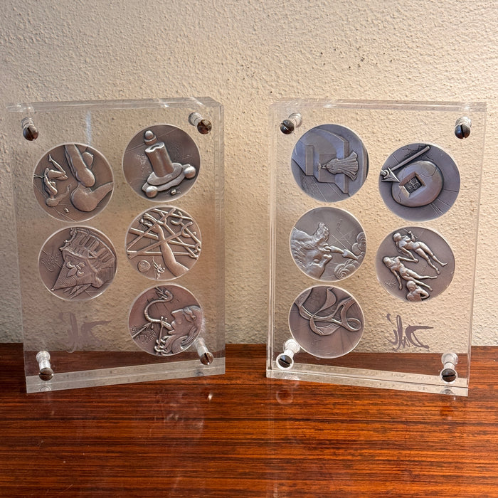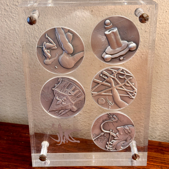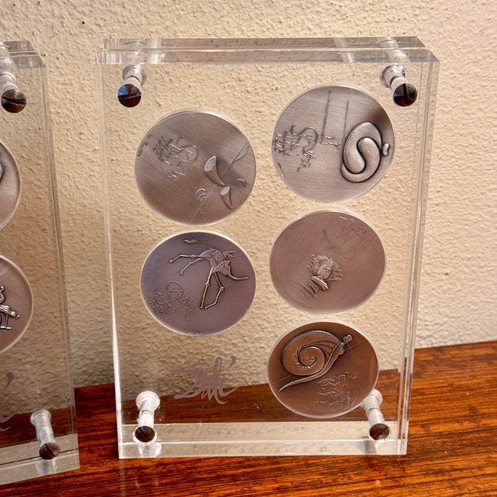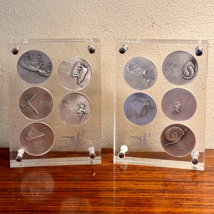 Salvador Dalì, i 10 comandamenti. Serie di 10 monete in argento puro, titolo .999 del 1975. Il fronte di ogni medaglia rappresenta i sacri comandamenti, interpretati dall'artista, sul retro raffigurato un tema biblico. La firma impressa dall'artista e l'anno vengono riportati su entrambi i lati di tutte le medaglie, incastonate in due blocchi di acrilico (smontabili). Tiratura a 1000 esemplari.