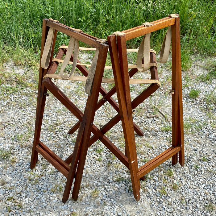 Originali reggivaligie in legno provenienti da ex albergo di Genova. Prezzo da intendersi per tutti e tre i pezzi, vendibili anche singolarmente.