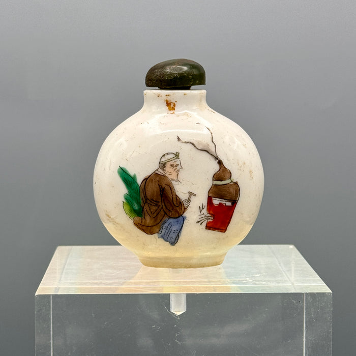 Snuff bottle bottiglia porcellana dipinta vecchio saggio Cina XX sec.
