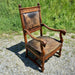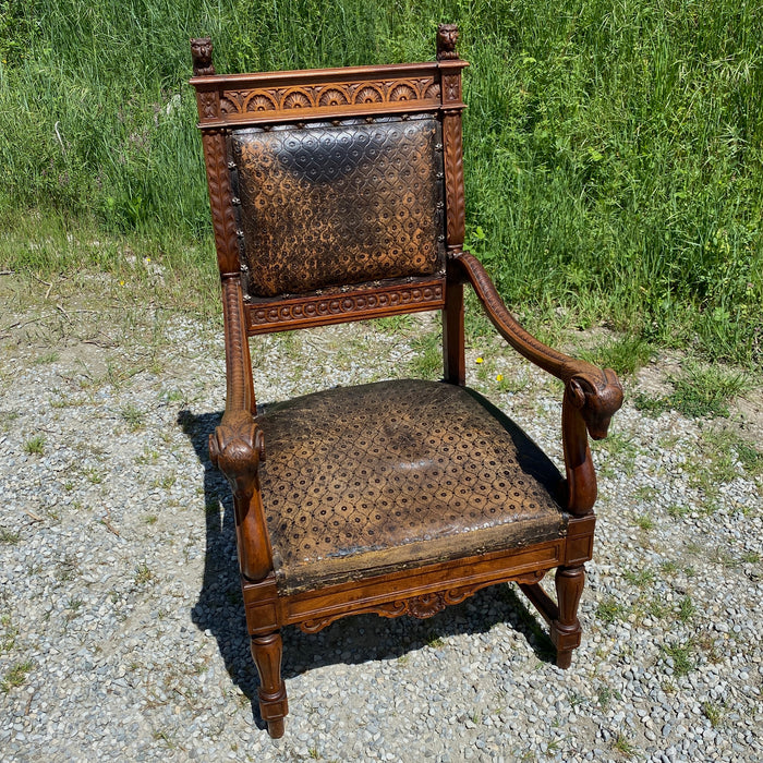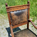 Trono eclettico legno scolpito e pelle decorata centro Italia 1920 ca