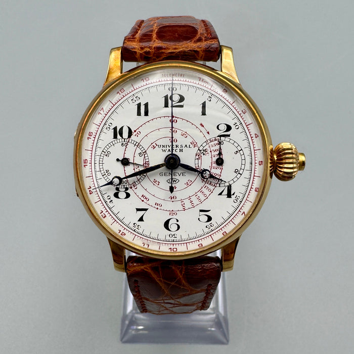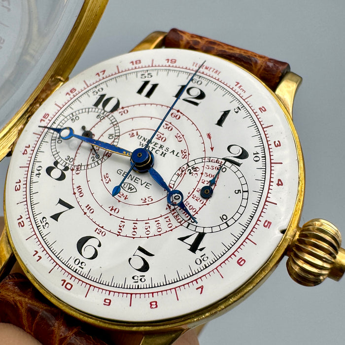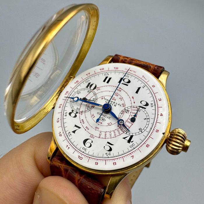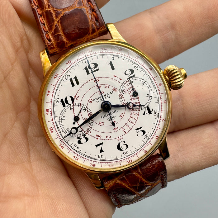 Universal Geneve chronograph mono pusher orologio meccanico oro 18kt 37 mm Swiss 1930 ca