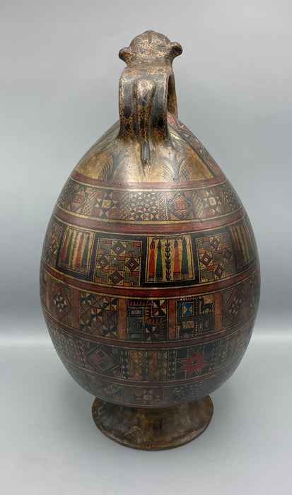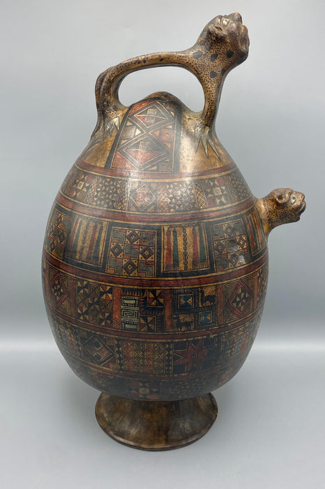 Vaso in terracotta policroma Giaguardo Inca, firmato. Produzione riproduzione dei celebri vasi Inca rinvenuti del sito archeologico di Pisac in Perù.