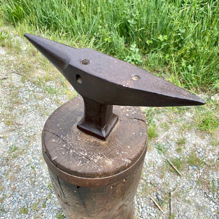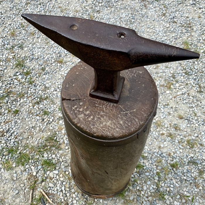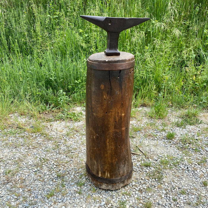 Originale incudine d'epoca, montata su un antico ceppo del XIX secolo.