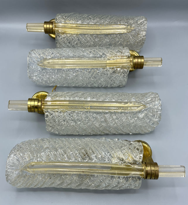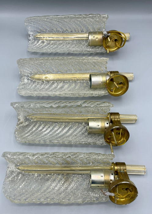 Lotto composto da 4 applique di murano realizzate da Venini, modello 413 design Tomaso Buzzi, produzione metà Novecento. Già elettrificate, pronte per essere montate.